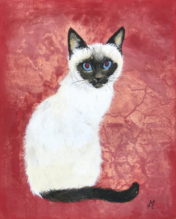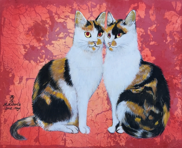 日本画家。赤を基調とし、少女と猫をテーマに制作。中学生の時に出会った竹内栖鳳「班猫」が道を定め、以来絹地に猫を描く事を生涯の仕事としている。