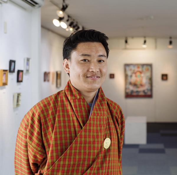 ブータン王国モンガル県出身。仏教高僧で伝統美術の名人であった父方の曽祖父の影響もあり、幼い頃から絵師の仕事に興味を持ち、壁画を描くアルバイトを始めました。 2007年にはブータン国立伝統工芸学院仏画科に入学し、プロの伝統絵師を目指します。//その後、2018年に日本に活動拠点を移し“ブータン伝統美術工房”を開設しました。//創作作品は心の平和を基本としています。たとえば美しい花が心を癒してくれるように、美しい芸術もまた心を癒してくれます。アートを通じ多くの方に平和と希望を感じていただけることを願っています。//今、日本伝統技術や高品質素材、そして、現代の最新技術が身近にあることはとても意味があります。それは“伝統と現代の融合”を意味しています。//誠実と敬意を忘れず、究極の美しさを表現することが人生の最大の挑戦です。