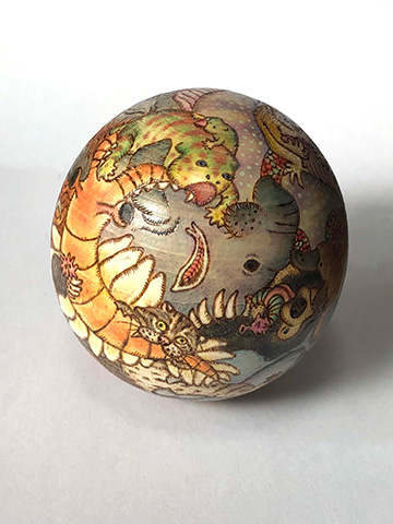 生命への尊敬と憧れと親しみをマトリョーシカ他、木の立体作品にて表現します。