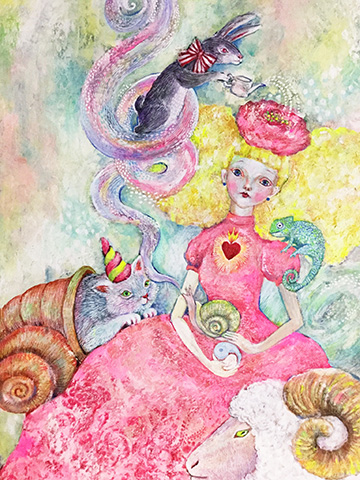2003年に銀座ボザールミューでの初個展より作家活動開始。動植物と人が渾然一体となった不思議な世界を展開して2007年現代童画展で現代童画会賞受賞。