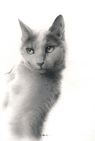 5歳のぽっちゃりキジ白女子と、6年前に保護し未だに触らしてくれない12歳のサビ三毛と同居。個展、グループ展、企画展にて作品を発表。