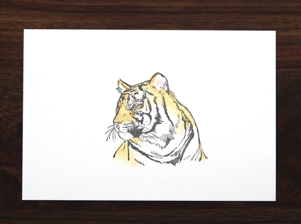 「スマトラトラ」 16.4cm × 16.4cm 素材 : 消しゴムはんこ版画 価格 : 3,300円