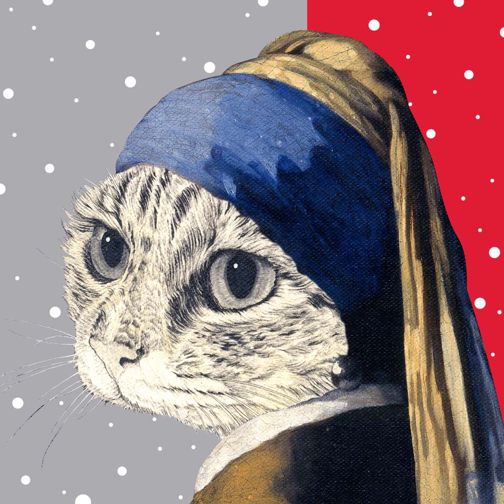 「フェルメール猫mini クリスマス」(10x10cm キャンバスに顔料プリント ¥11,000)