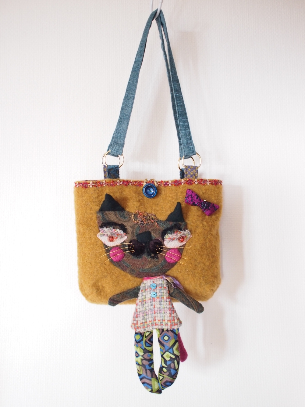 (W28 H68 D4 バック本体→ウール布 猫部分→ウール、綿 ポリエステル等 ¥20,000込