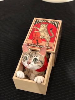 「マッチボックス猫」(縦180cm×横70㎝×高さ75㎝ 石粉粘土、木、布 44000円込)