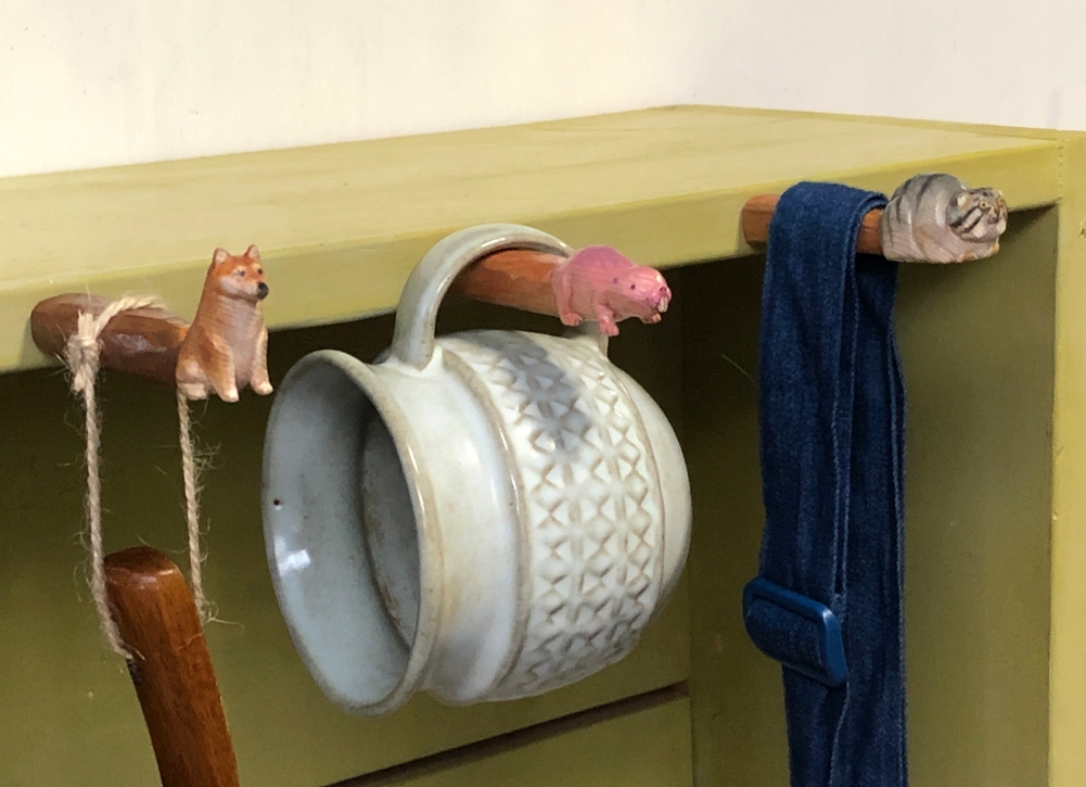 個展では出したことのない木彫の一点もののねじ込み式のフックです。