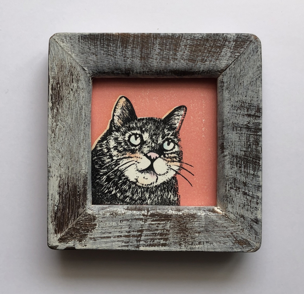 「小版画 キジトラ」(7.5cm×7.5cm 消しゴムはんこ版画 2000円込