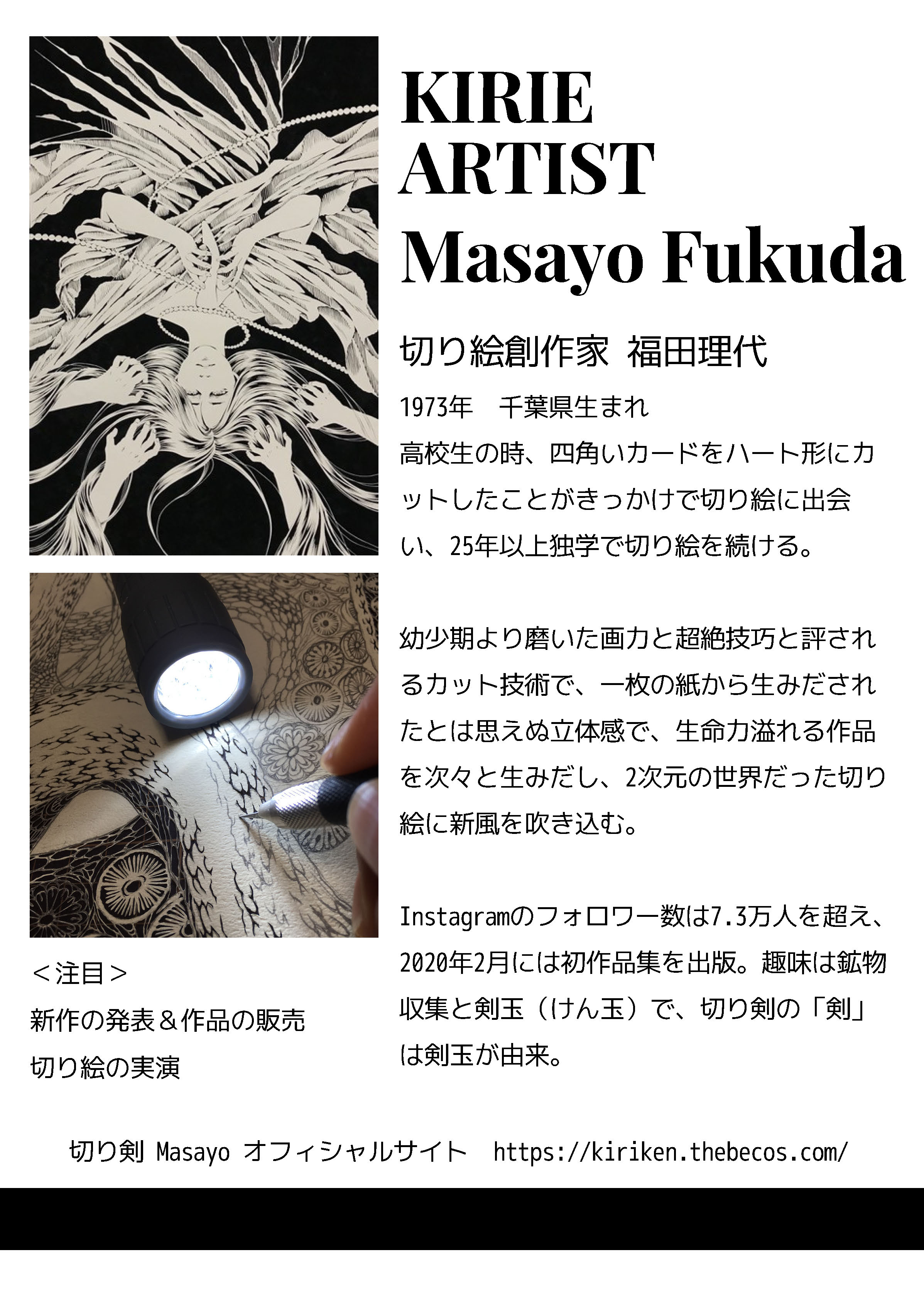 切り剣Masayoこと 切り絵創作家の福田理代です。