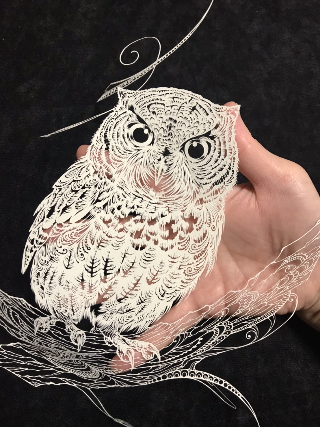 小さな頃から絵を描いたり、手先を使って何かを表現したりすることが好きでした。約30年前に切り絵に出会い、それ以来、独学で作品作りを続けています。
