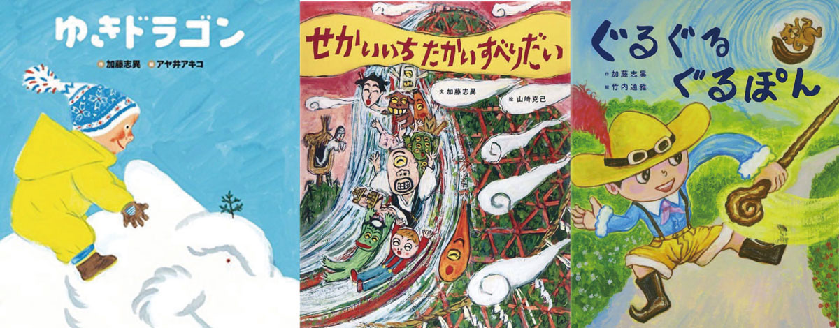 妖怪絵本作家。絵本の作に『とりかえちゃん』(絵:本秀康/文溪堂)、『ぐるぐるぐるぽん』(絵:竹内通雅/文溪堂)、『クッツケロ』(絵:本秀康/学研プラス)、『せかいいちたかい すべりだい』(絵/山崎克己/大日本図書)『なかなおり』(作:カピリナ、加藤志異+古沢たつお/朝日学生新聞社)などがある。